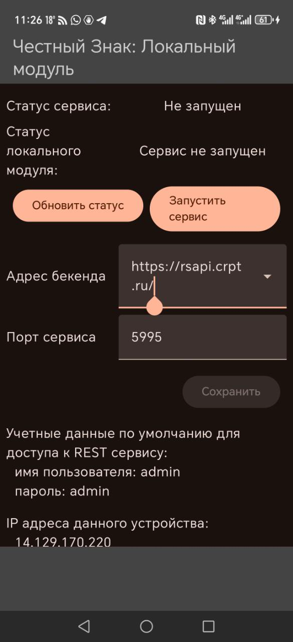 - Открываем приложение. Из списка выбираем продовый адрес бэкенда и порт. После заполнения – нажимаем кнопку «Запустить Сервис».