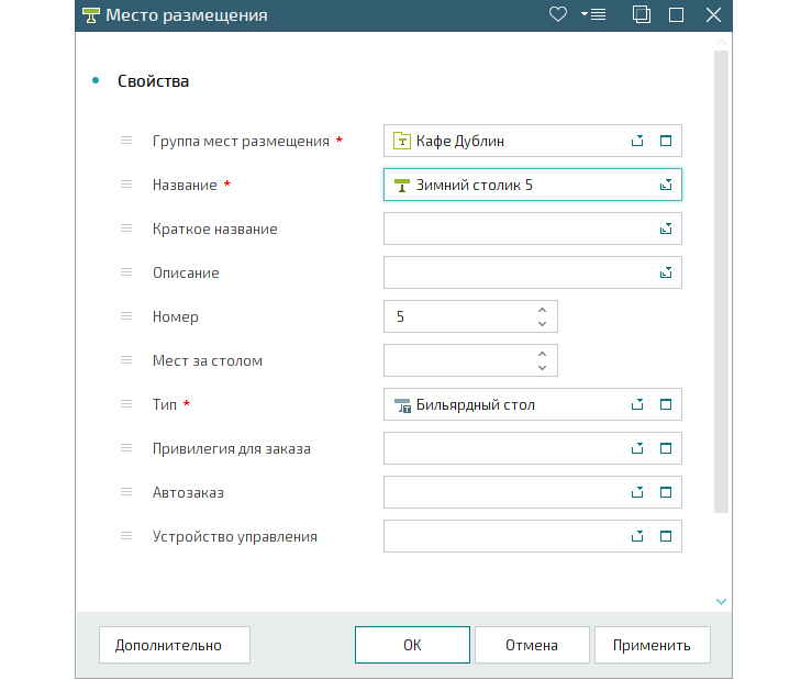 Мест за столом. В нем указывается, сколько гостей может разместиться за одним столиком (на месте размещения).